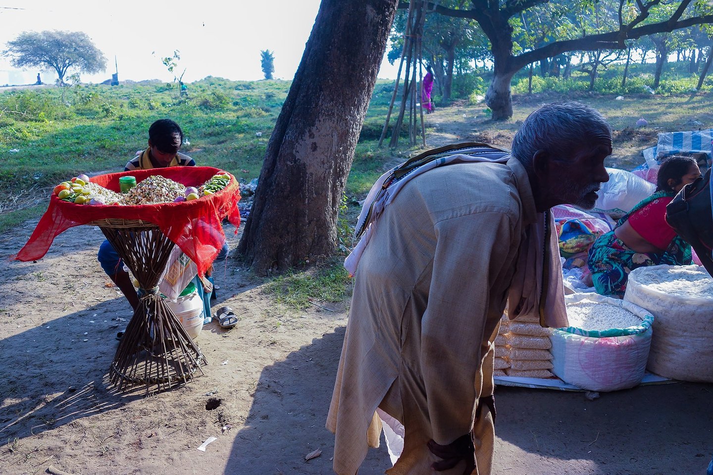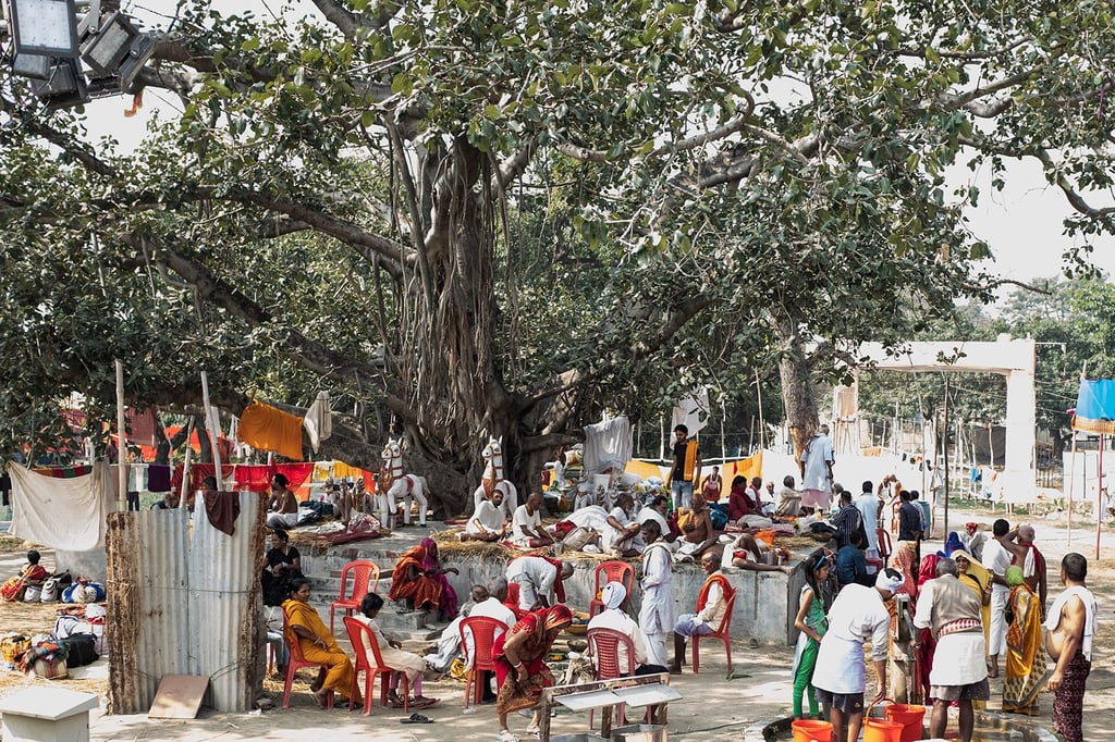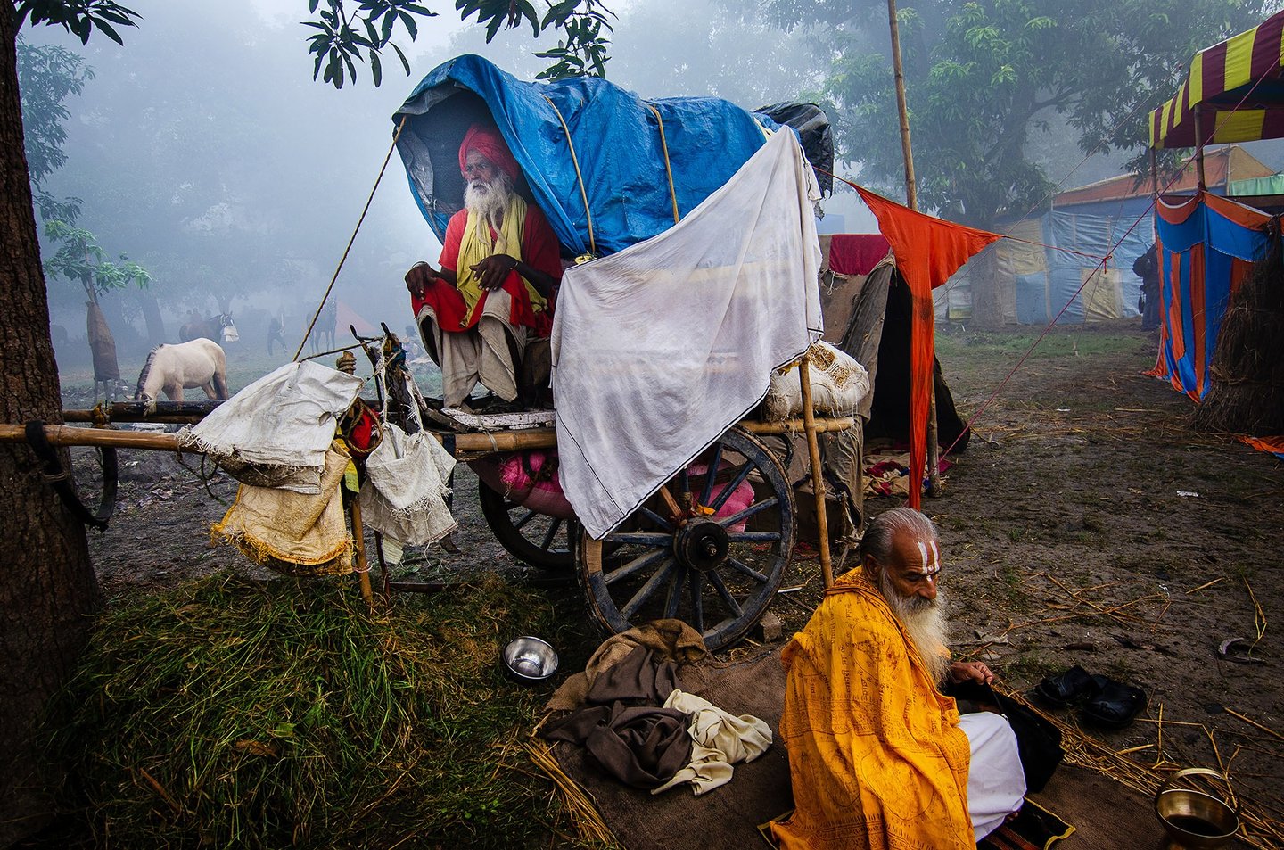 The entire fair takes place area covered with dense mango tress. The Winter morning in that area , wrapped in mist feels like stepping into a serene dream. The air is chilly and dense with fog, blurring the edges of the world. Narrow dirt paths are barely visible, covered with a thin layer of dew. Trees stand like silent sentinels, their outlines softened by the white shroud of mist.