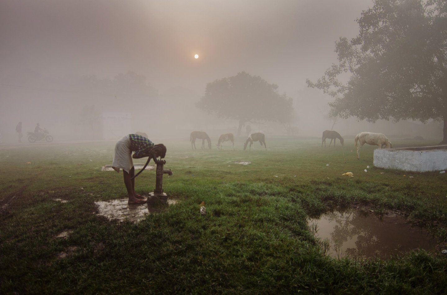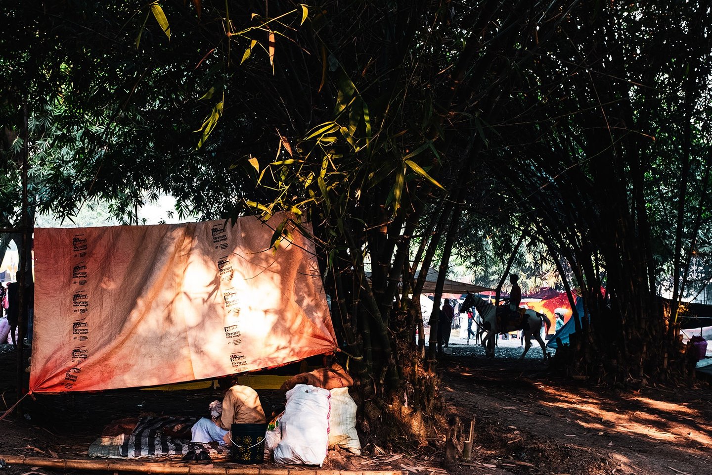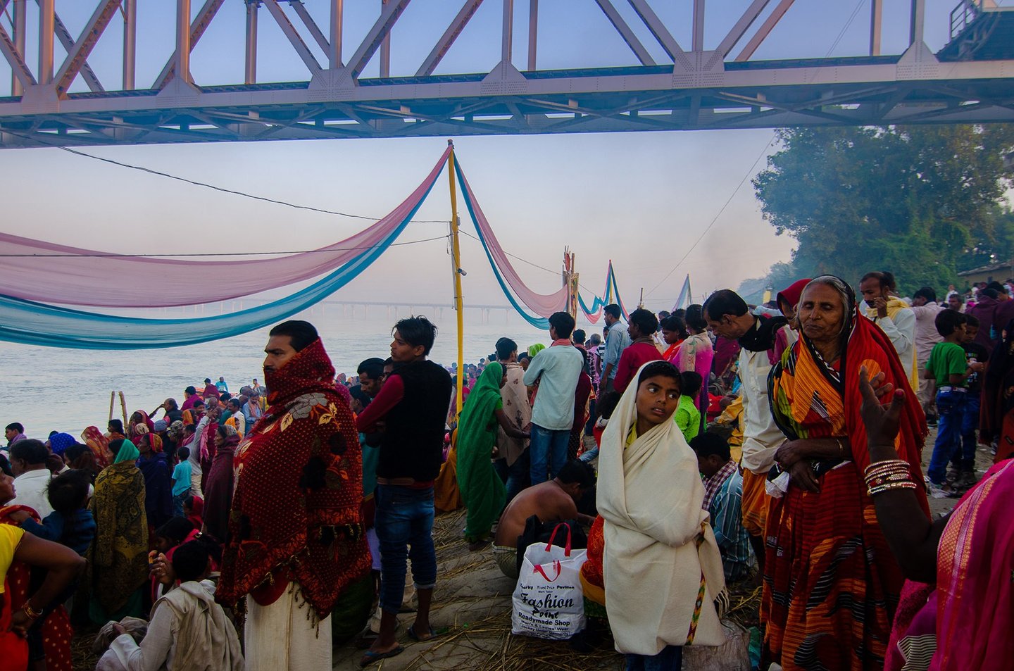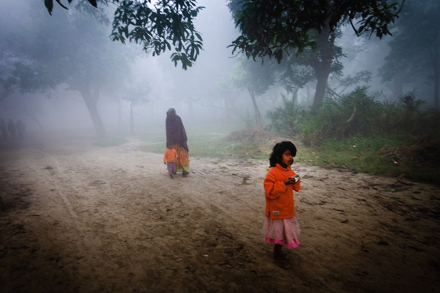 The entire fair takes place area covered with dense mango tress. The Winter morning in that area , wrapped in mist feels like stepping into a serene dream. The air is chilly and dense with fog, blurring the edges of the world. Narrow dirt paths are barely visible, covered with a thin layer of dew. Trees stand like silent sentinels, their outlines softened by the white shroud of mist.